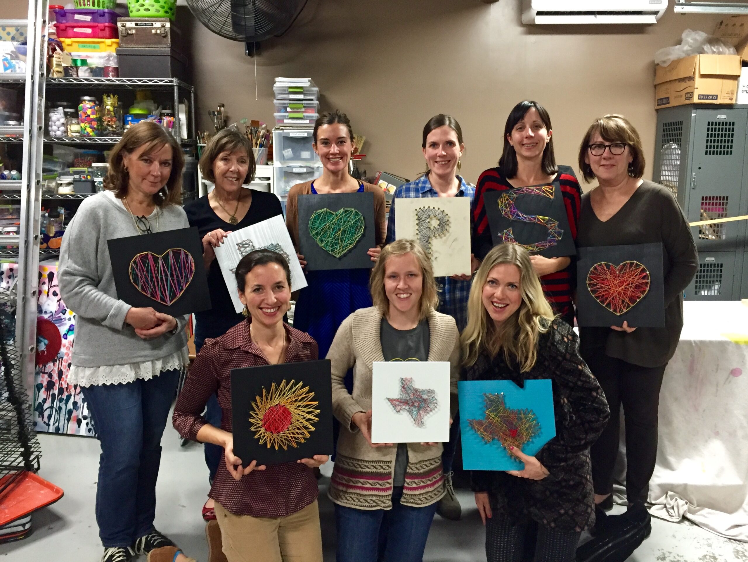 I had a Ladies Art Night at the house the other night. We made string art. So many creative ladies with such great ideas. If you haven’t heard, Wee Warhols offers BYOB Art Nights. We aren’t going to let the kids have ALL the fun. They are usually $25 a person, depending on the chosen project. You get a group together and we schedule a night. I discuss project ideas with the organizer and we make a plan. You show up with friends, wine, snacks… I provide the space, all the materials that you will need and some gentle guidance. It is really relaxing and fun. This time it is also nice to sit by the fire pit and catch up.