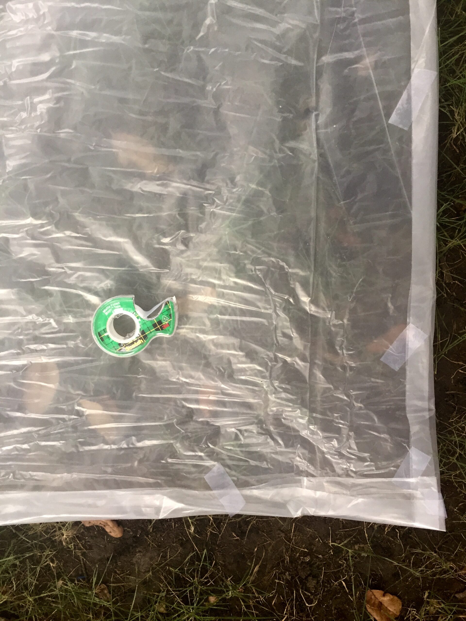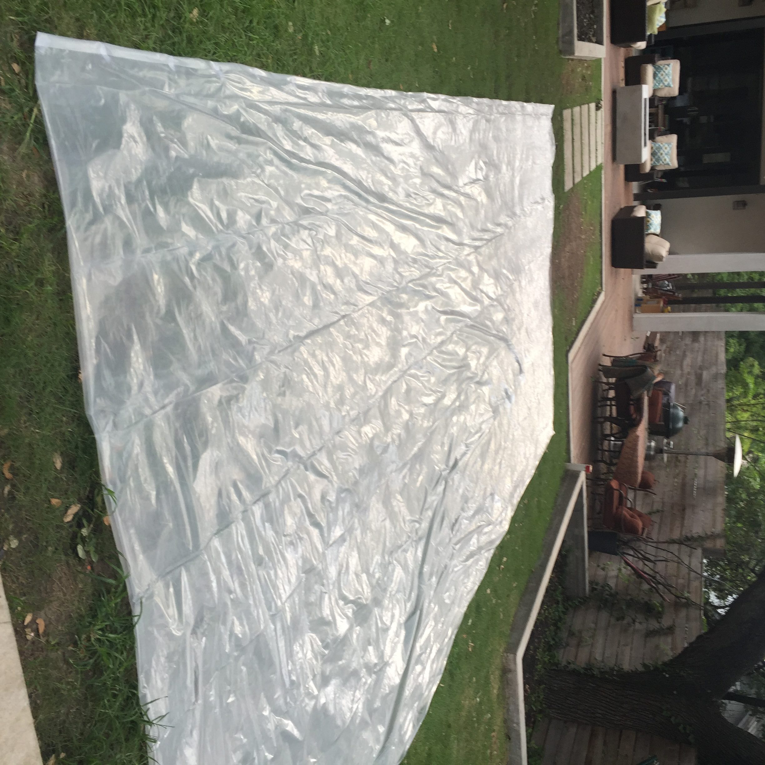 - 12′ x 50′ 1.5 mil Polyethylene Painter’s Tarp from local hardware store (If you want to be able to climb on the bubble you will need a much heavier gauge.)