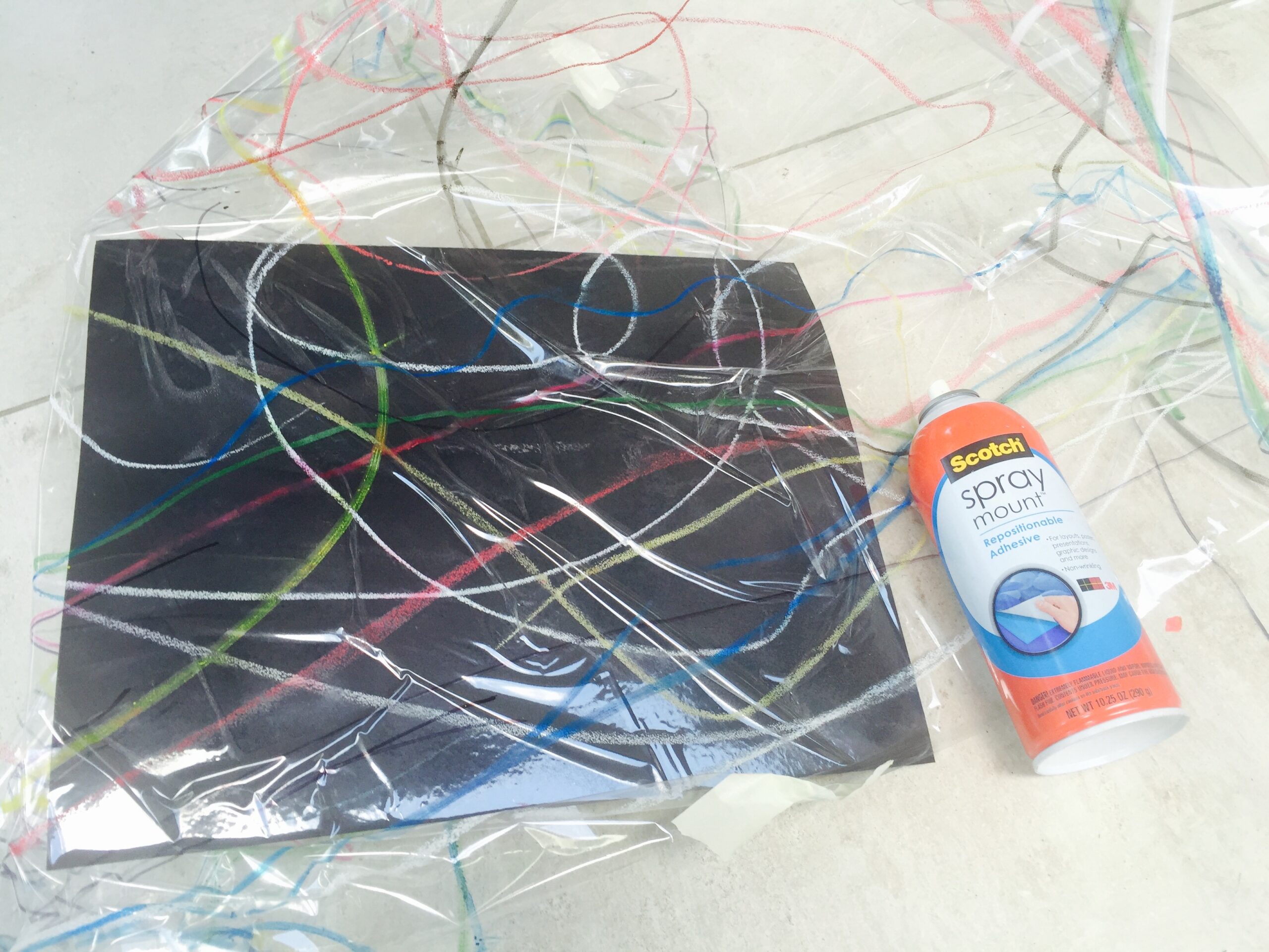 Then we sprayed poster boards with spray adhesive, and cut off the excess clear layer.