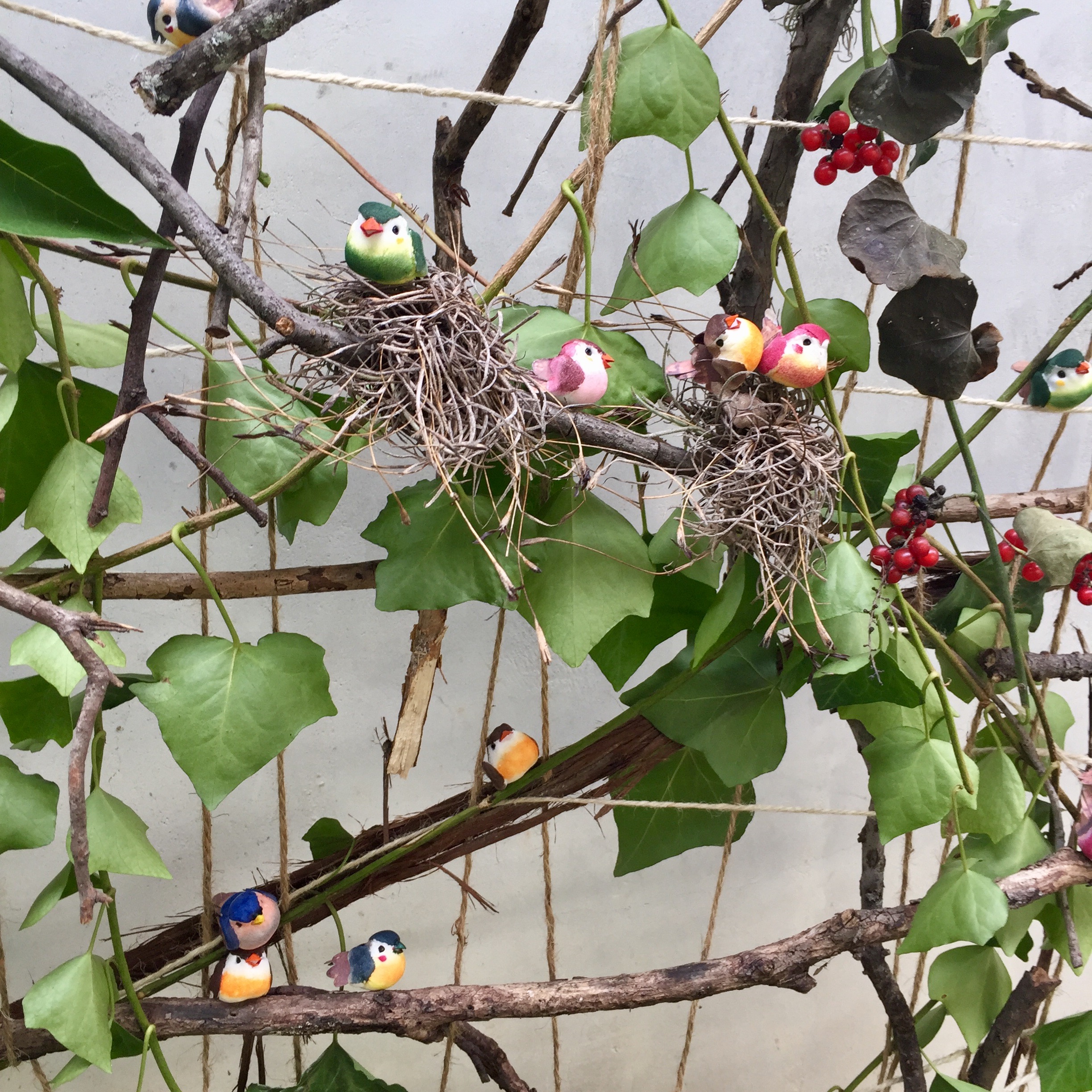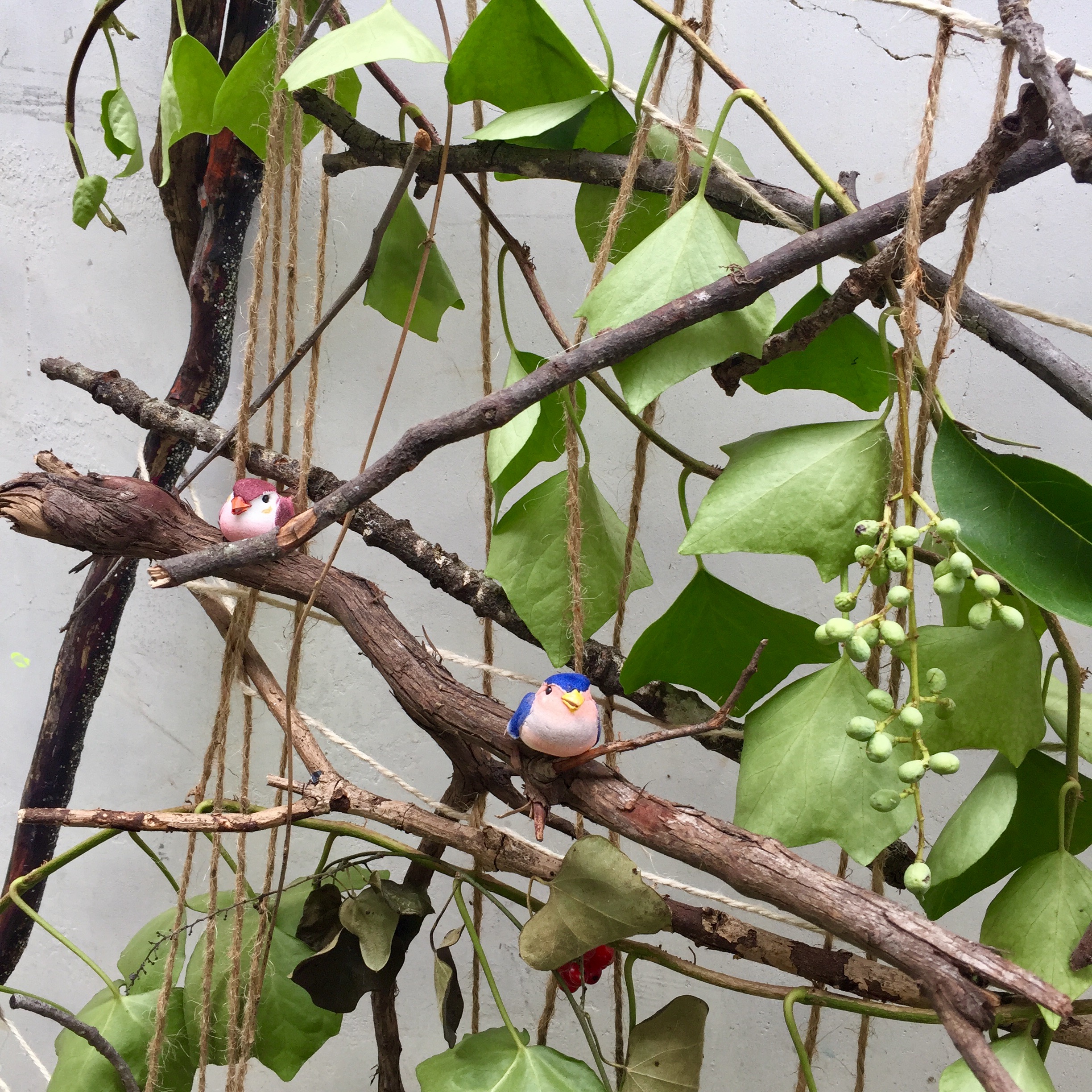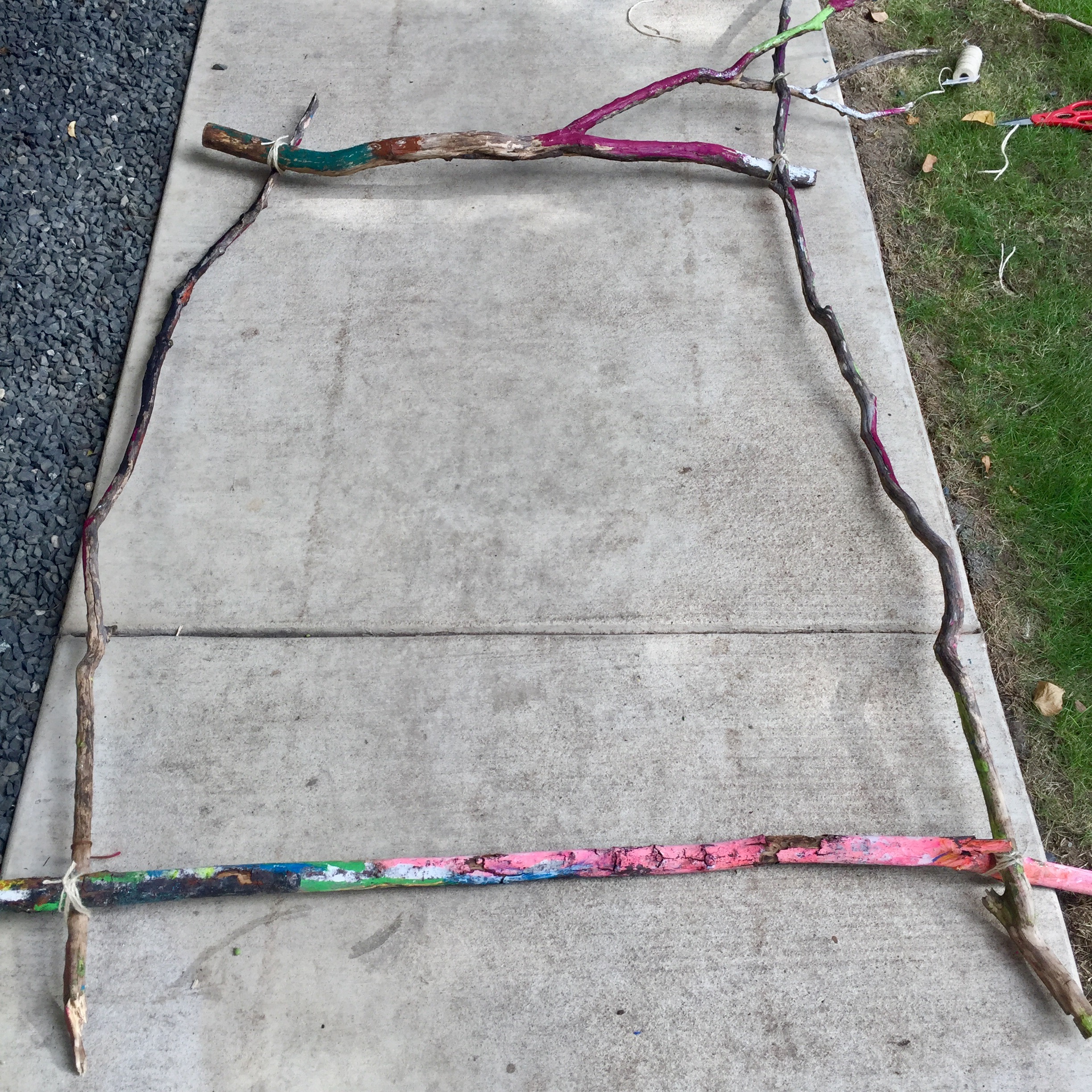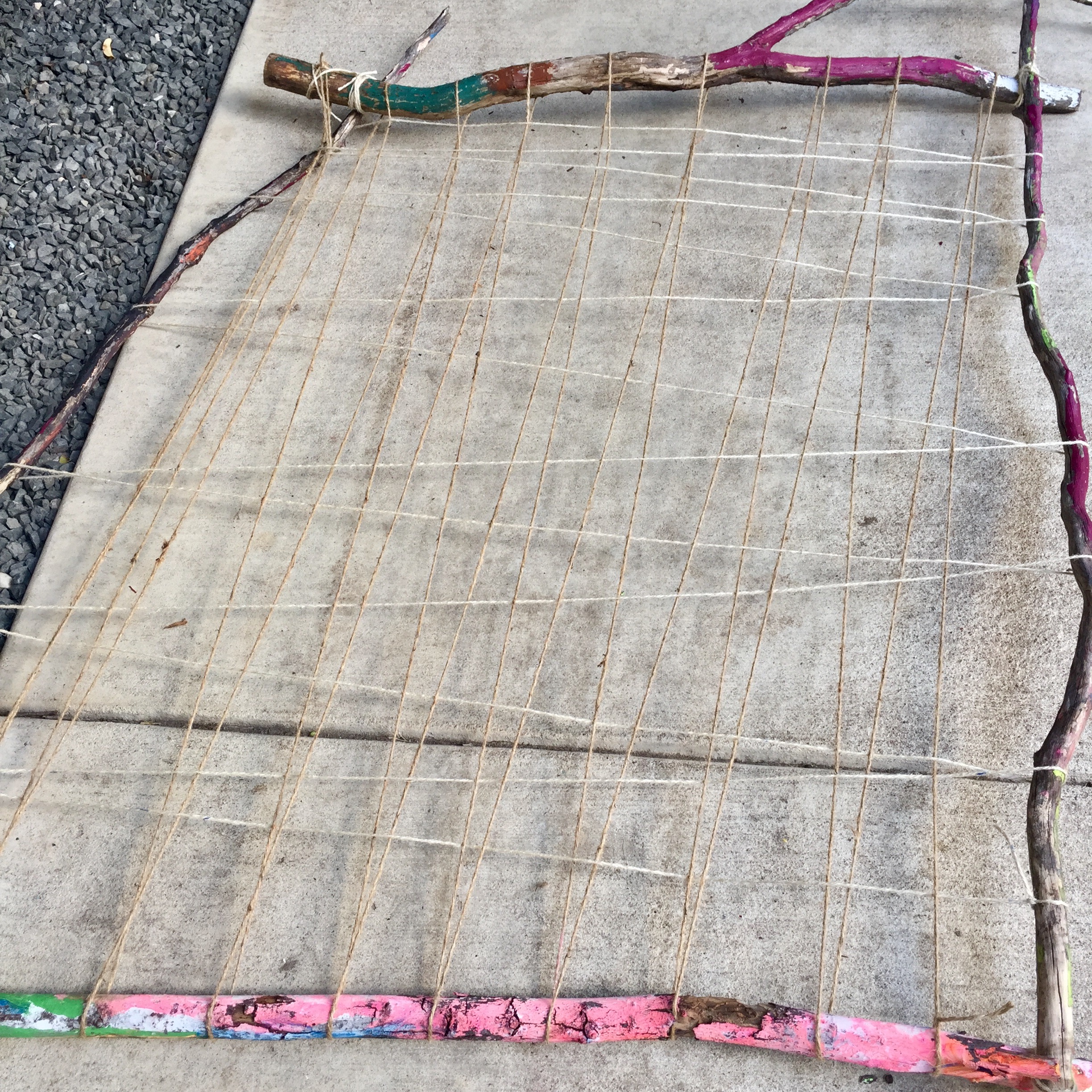 Once the loom was built the kids went on a nature hunt and added sticks, vines, berries, and little little birds to it.