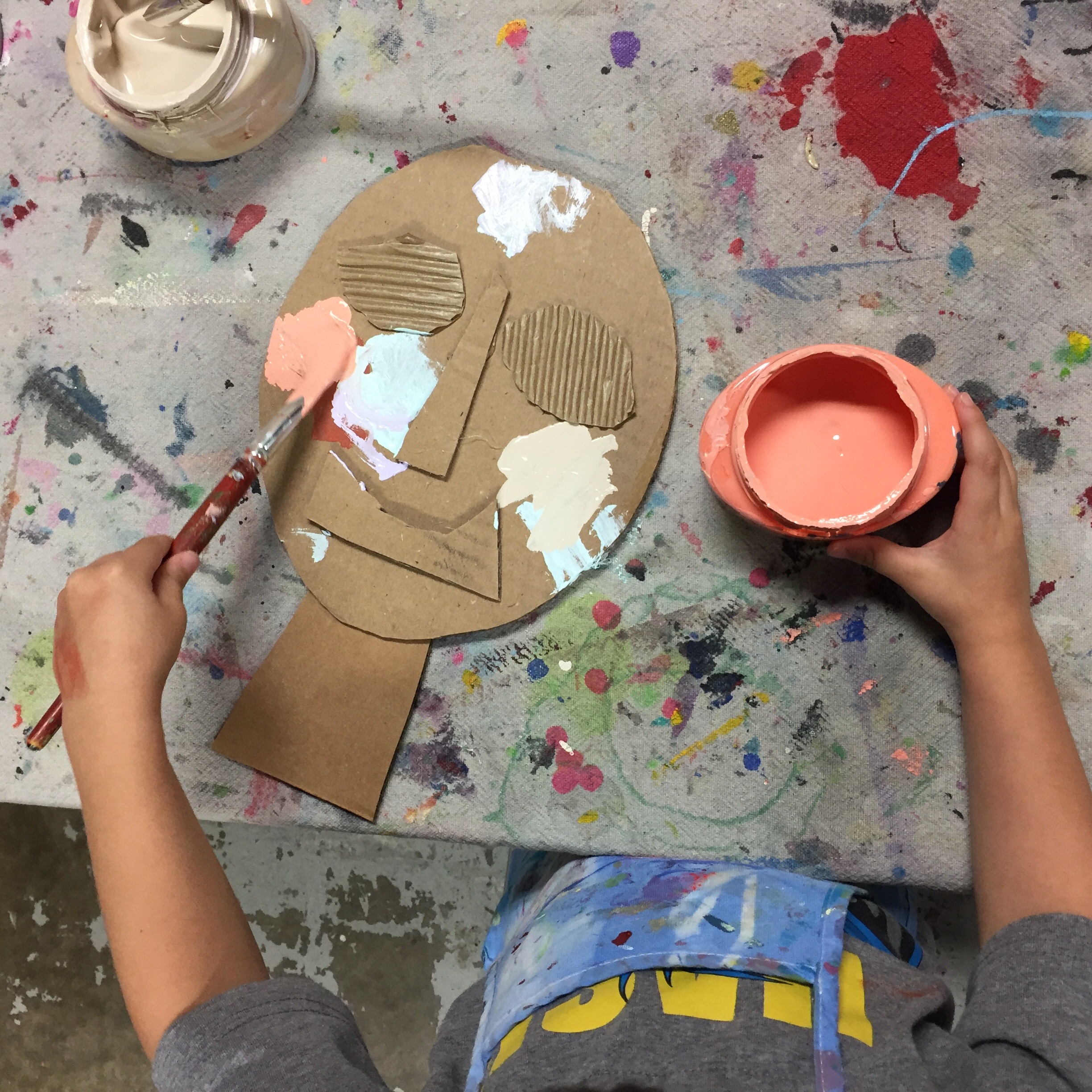 I tried one of the book projects out with my Wee Warhols. We did Workshop 17- Cardboard Collage Faces. It was so interesting to see how different everyone’s collage faces turned out. Each one an original! Here is a sneak peek: