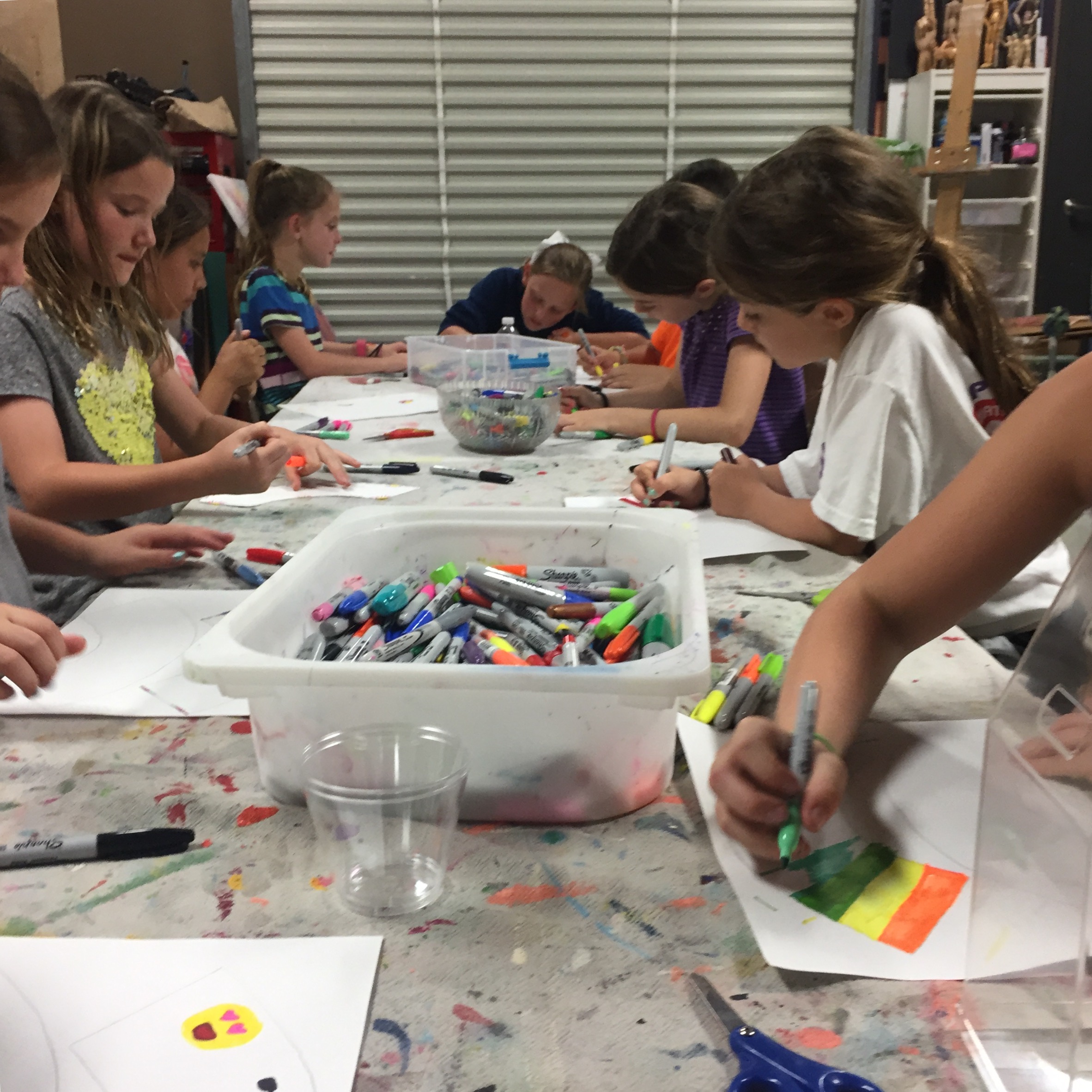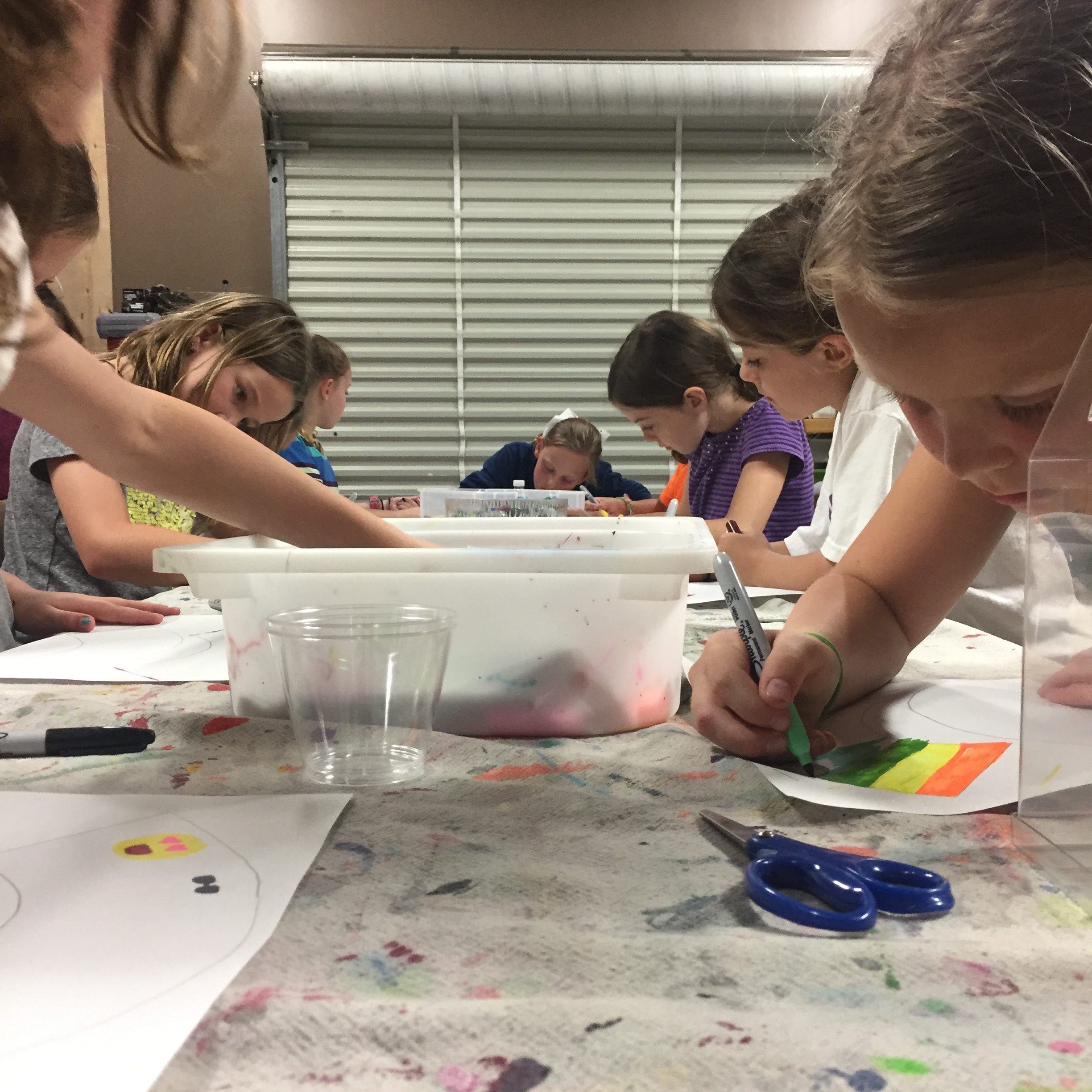 I made a “rainbow shaped” template for the kids to decorate and cut out. This was later placed between two plastic cups (planters), to protect the drawing.
