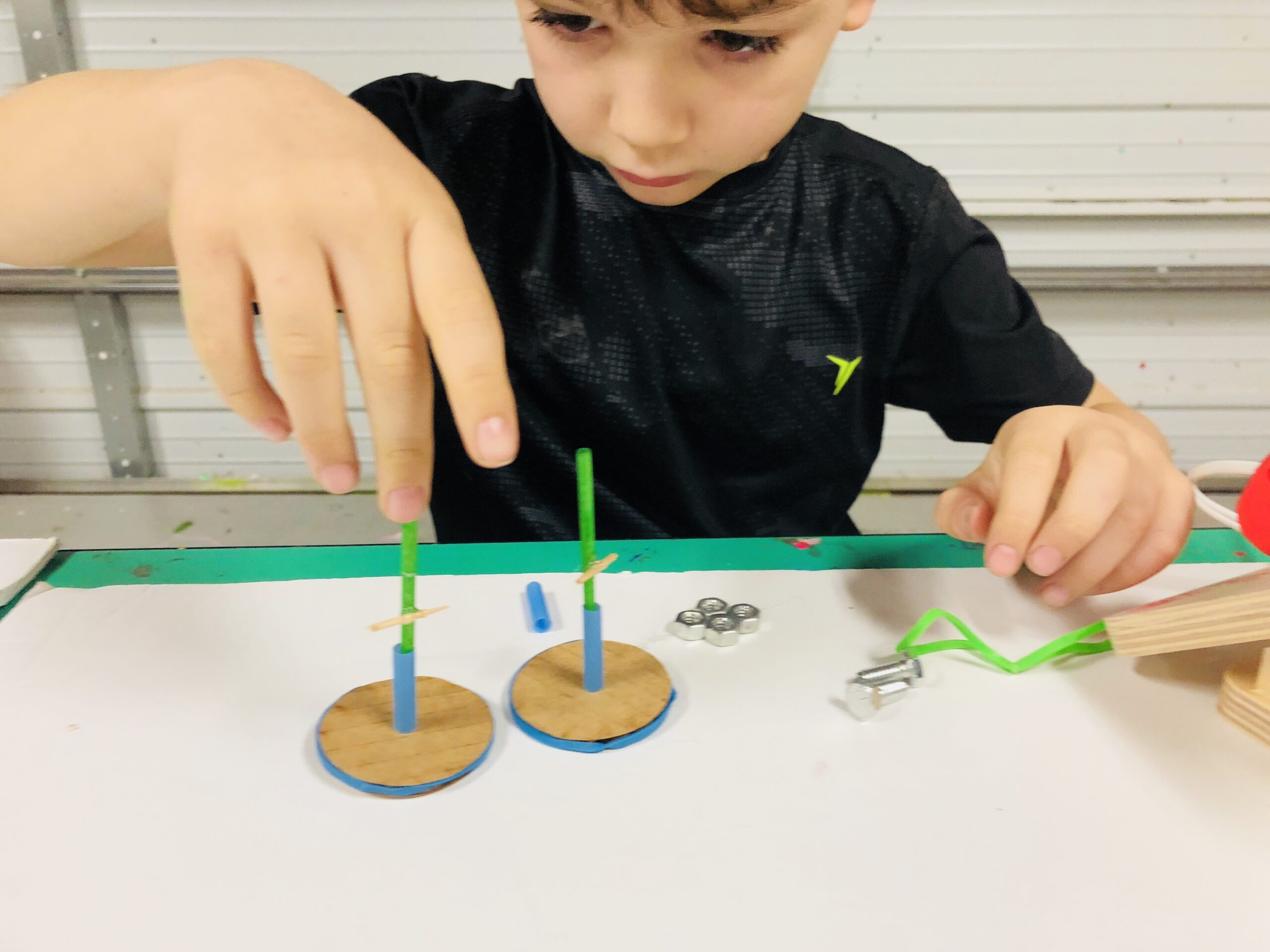 This is another rubber band car activity that we tried and really liked, but I don’t have 120 paper towel rolls for the kids at STEM Day.