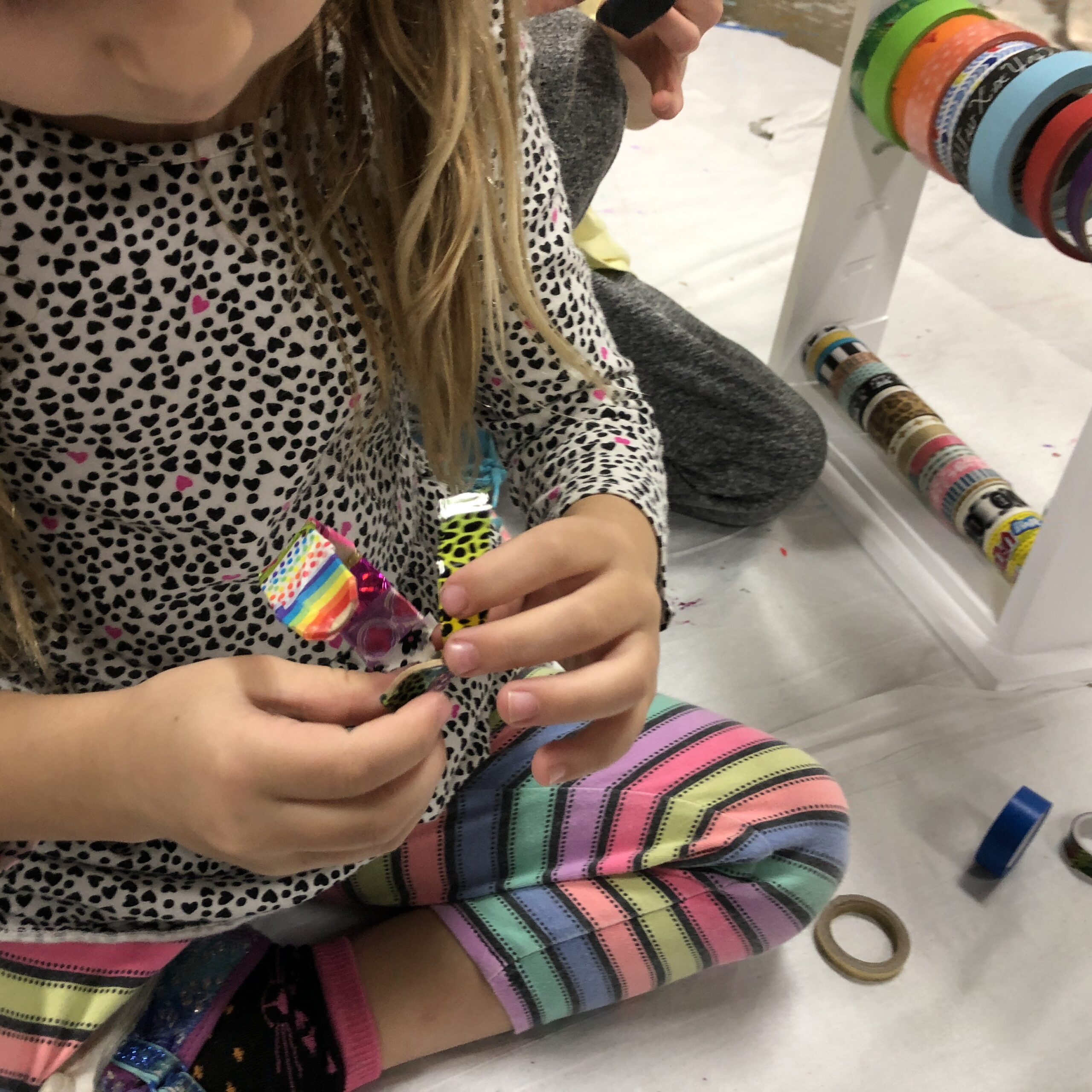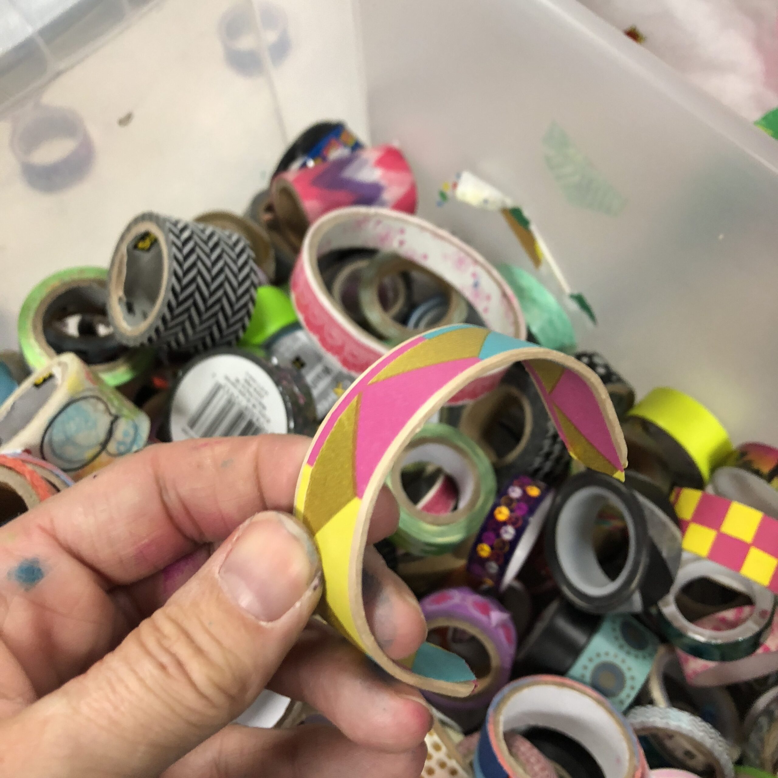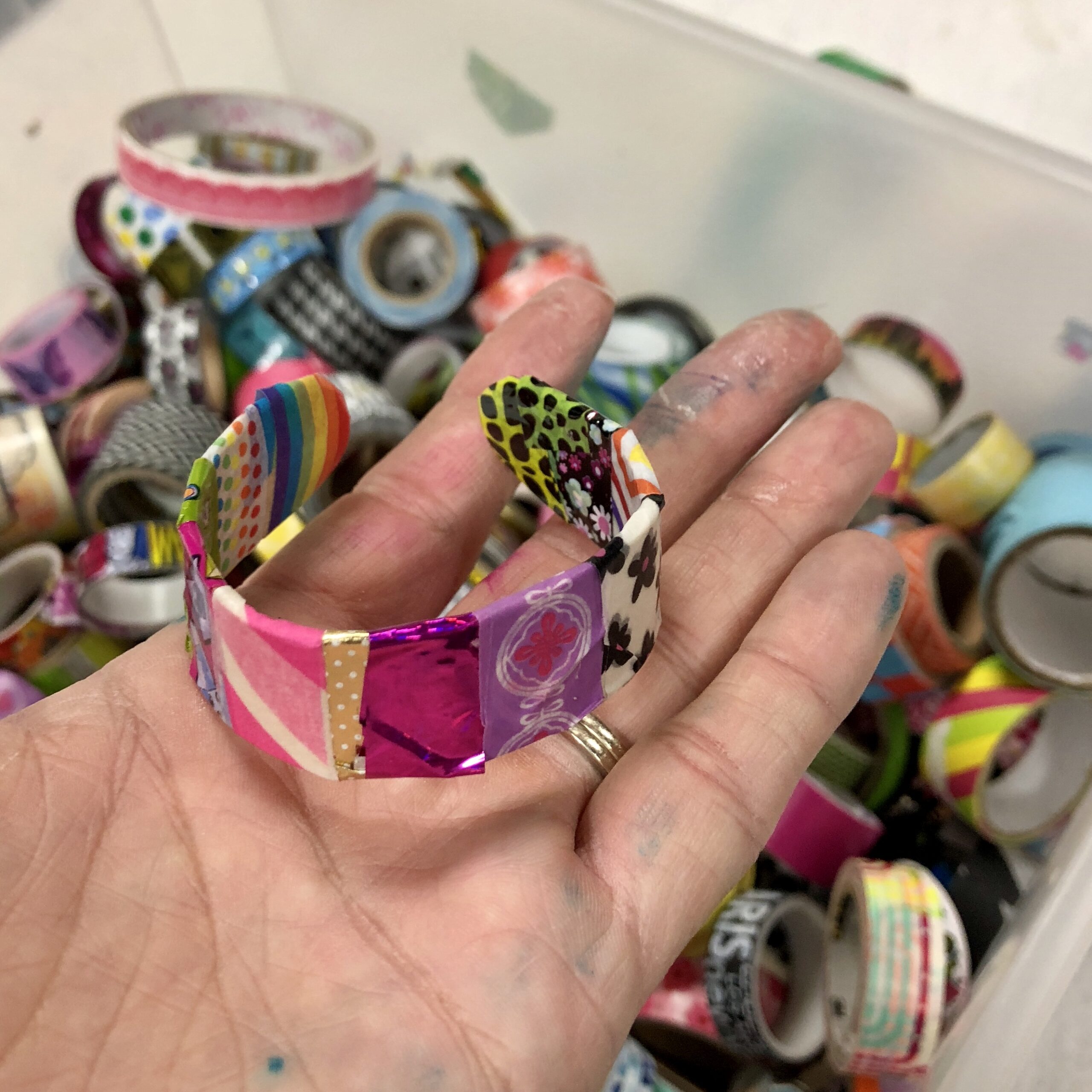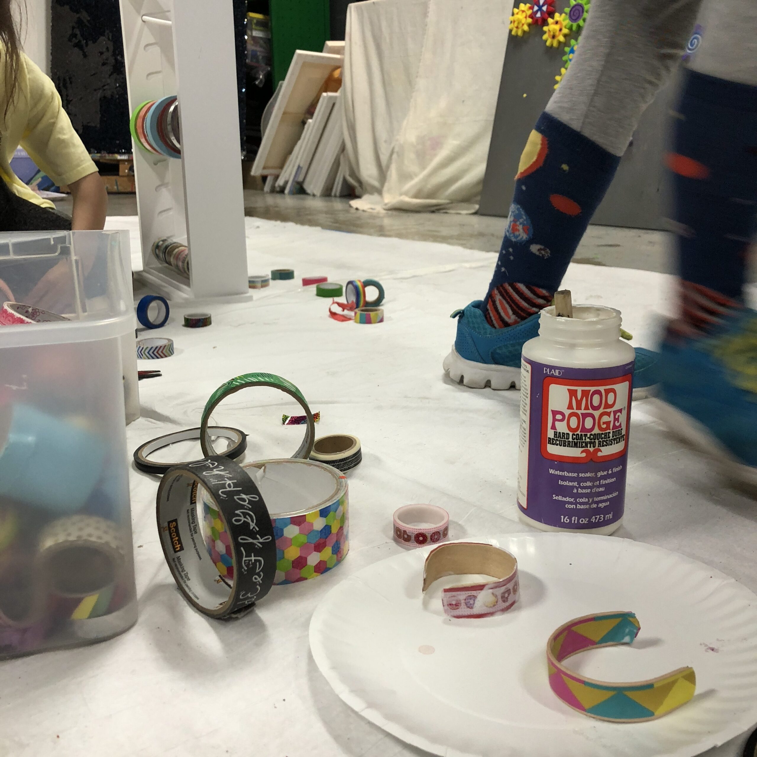 We decorated the bracelets two ways. One class decorated them using decorative paper and Mod Podge: